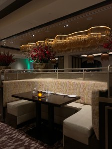 Though Topolino’s Terrace is, fittingly, on the top floor of Disney’s Riviera Resort, I recommend starting your dining experience on the ground floor: at Le Petit Cafe just off the lobby. The cafe is an experience unto itself (a future post!), but if you’d like a pre-dinner apertif, they’ll happily put your cocktails in to-go cups so you can enjoy them outside.