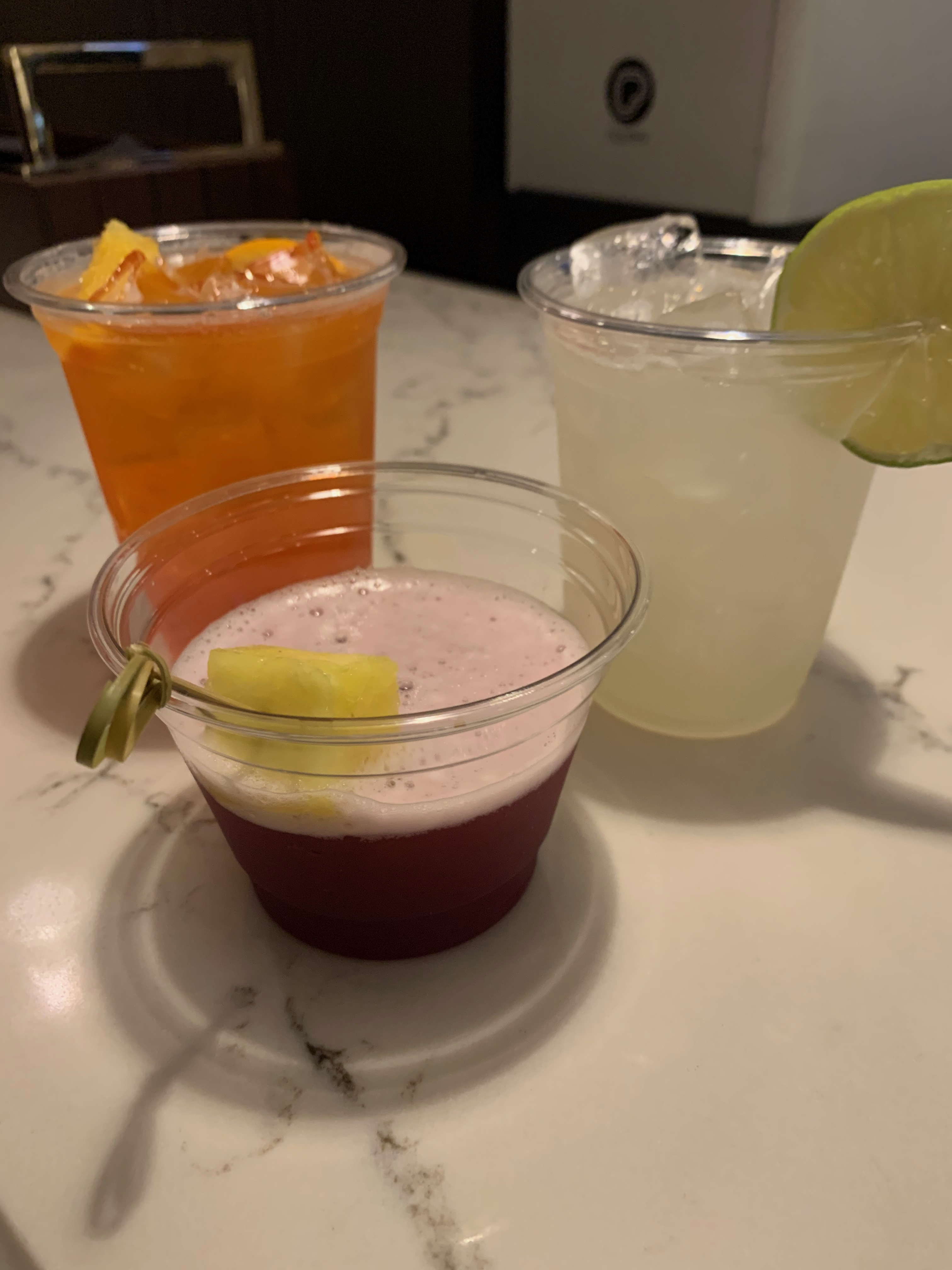Though Topolino’s Terrace is, fittingly, on the top floor of Disney’s Riviera Resort, I recommend starting your dining experience on the ground floor: at Le Petit Cafe just off the lobby. The cafe is an experience unto itself (a future post!), but if you’d like a pre-dinner apertif, they’ll happily put your cocktails in to-go cups so you can enjoy them outside.